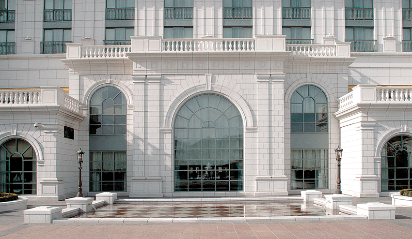 Constructed in preparation for the 2002 winter Olympics, this five star hotel incorporates approximately 295,000 SF of Bethel White Granite. To protect both the granite and its required support system from undue weathering, the stone was mechanically fastened with stainless steel anchors to a hot-dipped galvanized strongback system. Each individual panel incorporates guttering and weep systems to control any moisture that may occur beyond the stain-inhibiting sealant utilized as the primary barrier. In addition to the exterior, KEPCO+ also installed 50,000 SF of exterior paving and sitework.